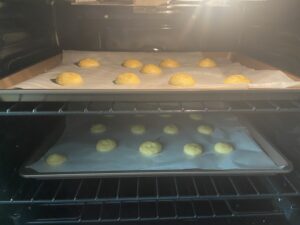 アメリカのオーブンは大きいのでちょうど2段に収まるレシピなのですが、日本の小さいオーブンであれば半量で作るのが良いと思います。