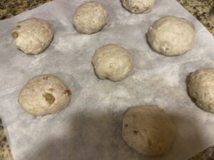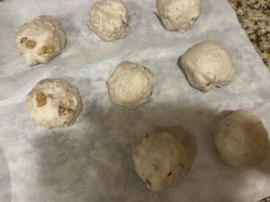 9.生地を台に出したら、8等分に分け、軽く丸めます。