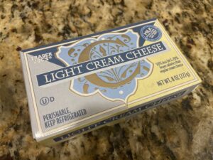 この後チーズクリームを作りますので、クリームチーズ227gを冷蔵庫から出し、常温に戻しておきます。