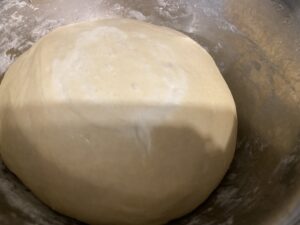3.しっかりまとまったら、ボウルに戻しラップをして1時間ほど室温で発酵させる。
