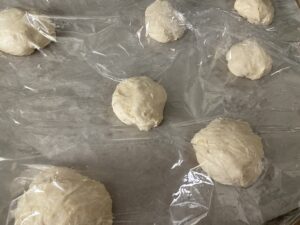 6.生地を1つずつ丸めたら、クッキングシートをしいた天板に並べて室温で30分ほど発酵させます。