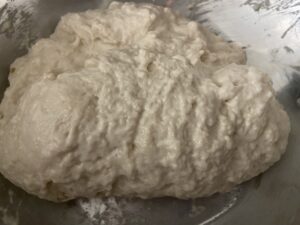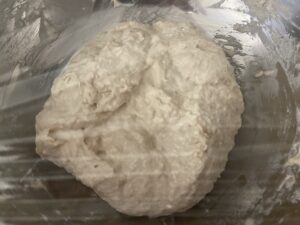 4.ひとまとまりになったら、ボウルにラップをして室温で1時間ほど発酵させます。
