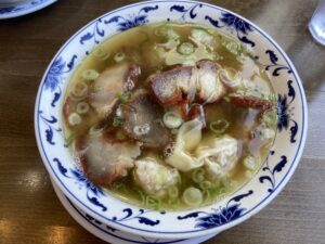 チャーシューと手作りのワンタンが8個も入ったスープです。
