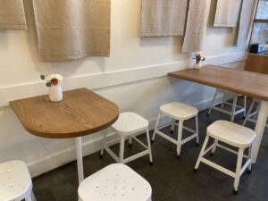中にも外にもイートインスペースがあります。